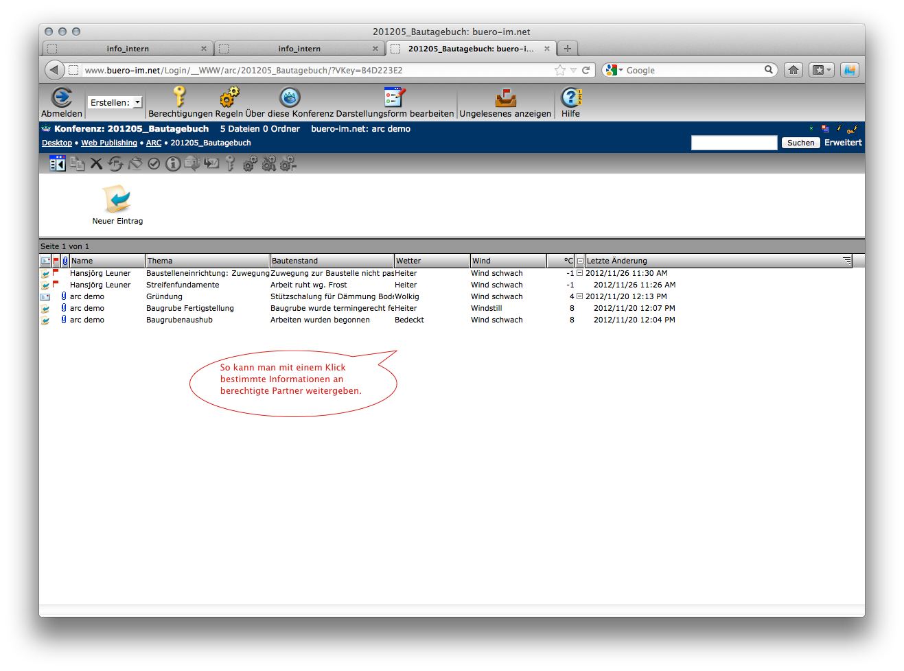 Wie bereits unter dem Abschnitt Mobilität erwähnt, besitzt buero-im.net die Fähigkeit, sämtliche Inhalte auch in einem Webbrowser darzustellen.